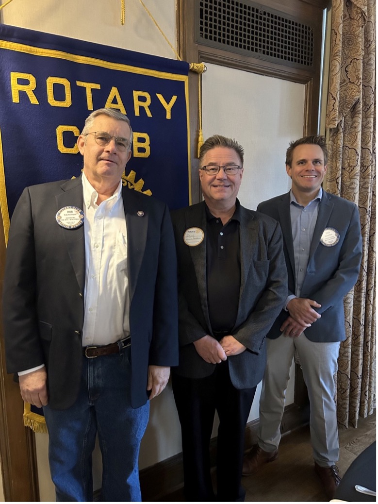 Chair of the Day Rob Hofmann, Speaker David Scheuer, with President Elect Dan Maki