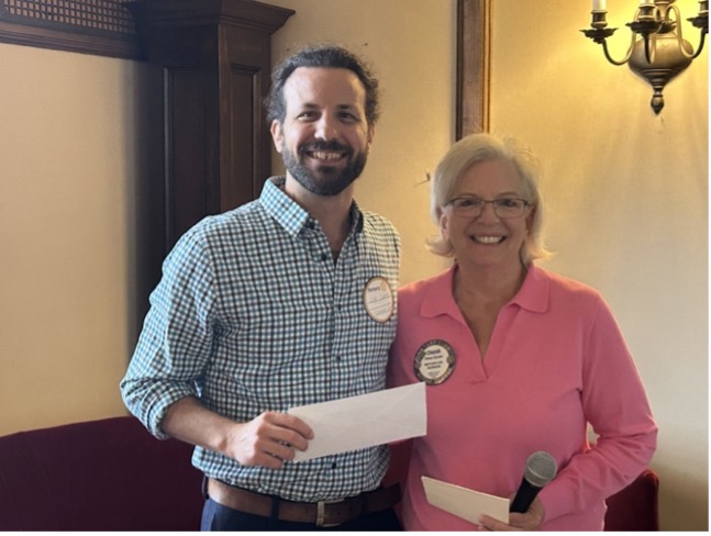 Seth Currier of the Damiano Center accepting a $3,000 grant from Chana Stocke