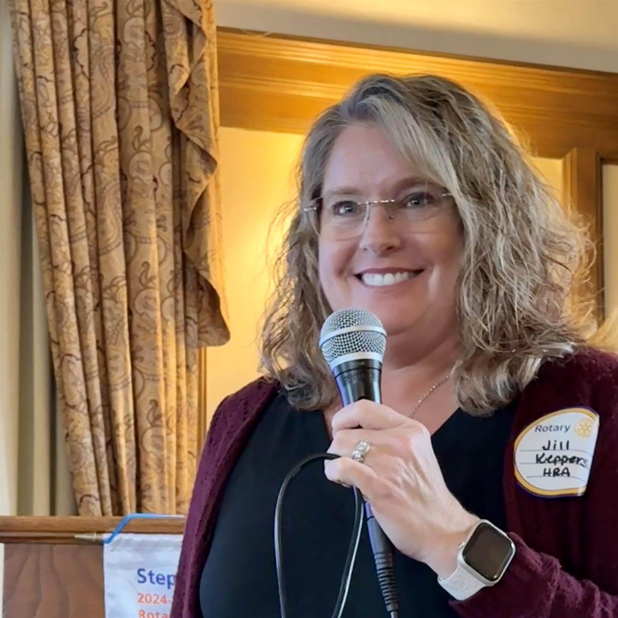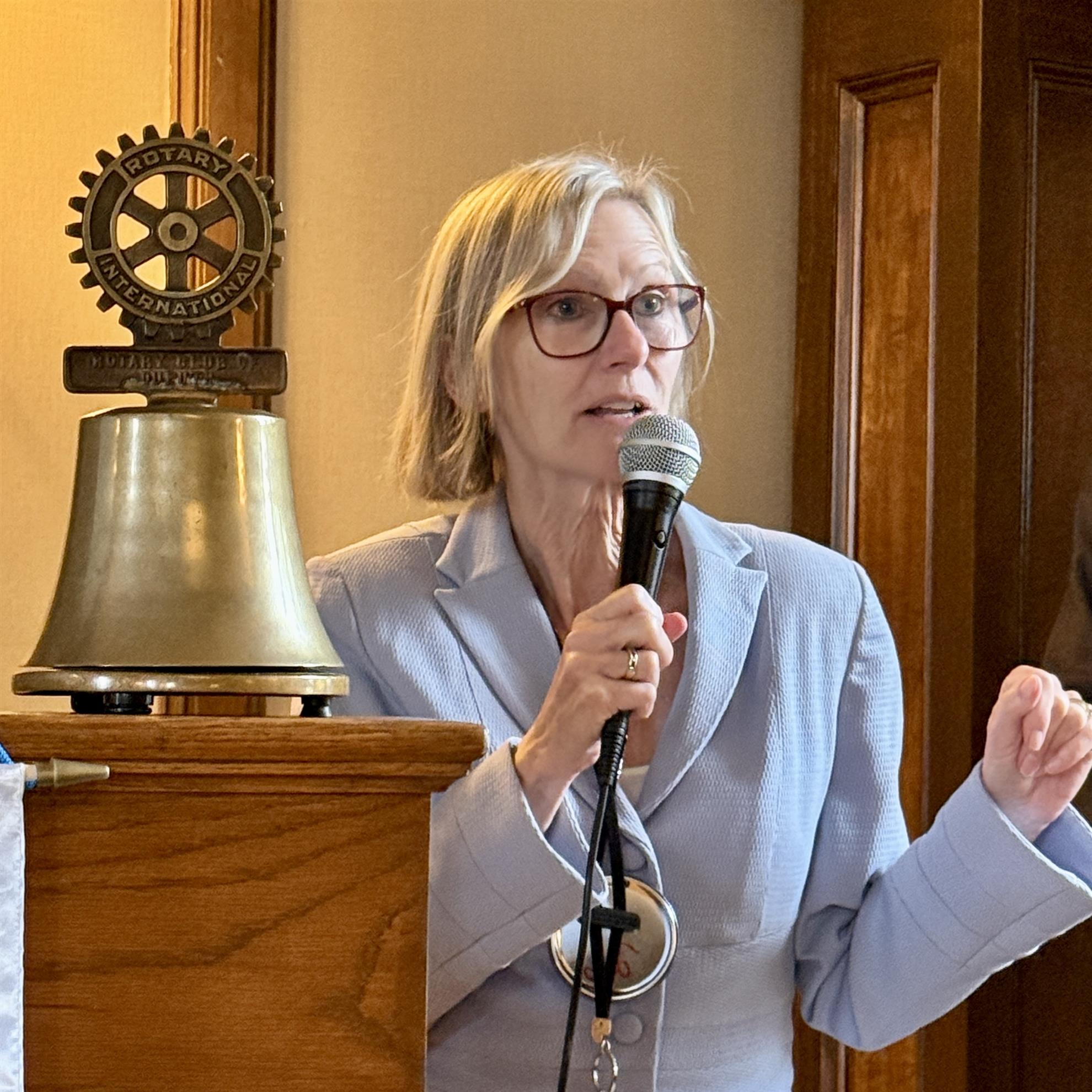 The Golden Can was kicked by Renee Burns with thanks to those who volunteered for the Rotary District 5580 Conference as well as those who attended. The conference was especially important as it was hosted in Past President and District Governor Elaine Hansen’s hometown of Duluth, by her home club.