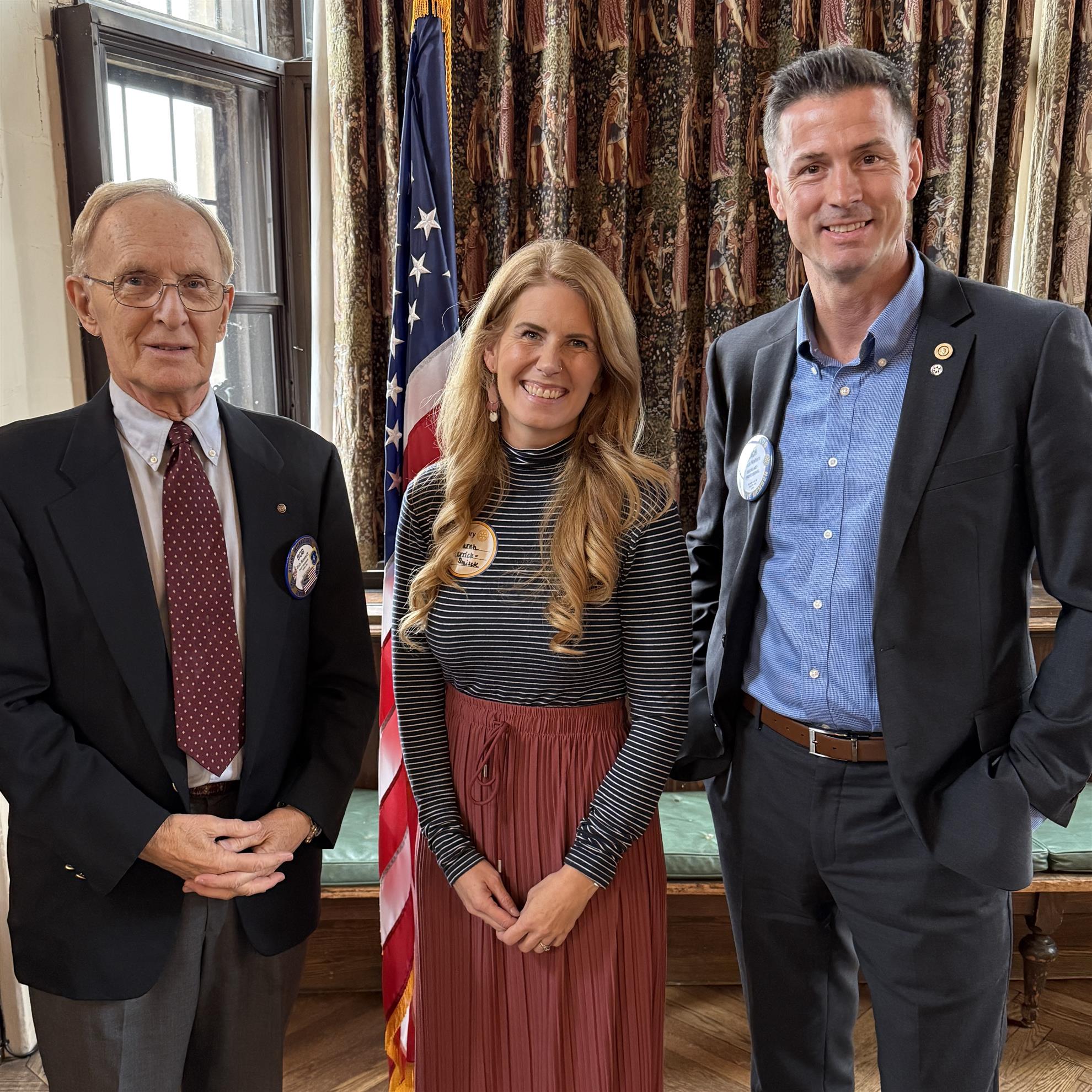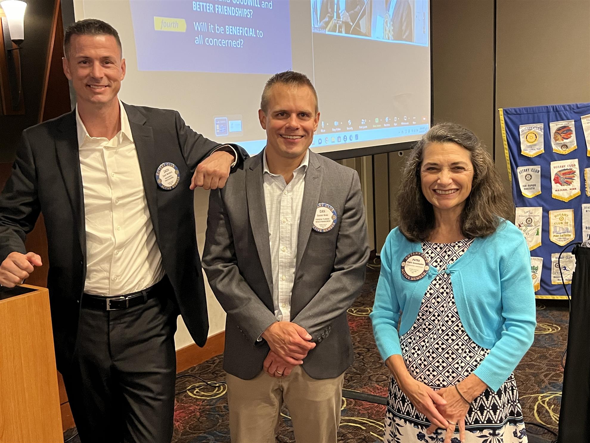 Past President Bob Bennet with speaker Sarah Herrick-Smisek and President Zach Walters