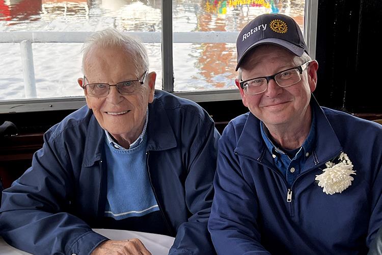 Past President and Globetrotter Al Makynen with President Zach Walters nearby