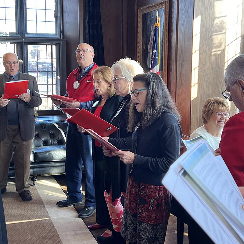 (L to R) Bill Lundberg, Past President Elizabeth Simonson, Megan Maki, Past President Bill Gravelle, Jerry Pelofske, and former club member Dick Pelinka. Not pictured: Jack Seiler