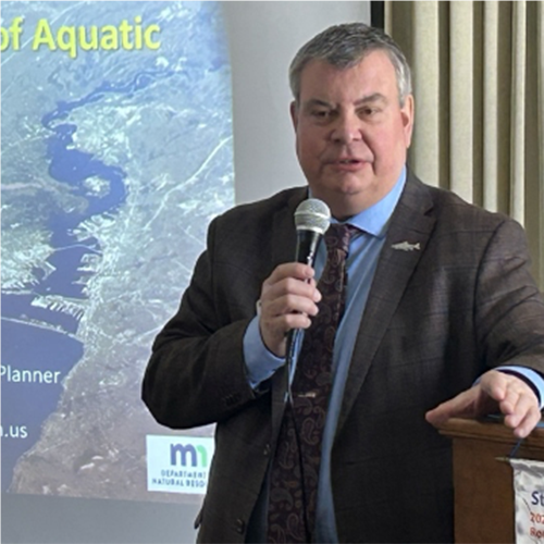 Dan Maki as Chair of the Day introduced Doug Jensen who is an Aquatic Invasive Species Prevention Planner with the Minnesota Department of Natural Resources. Today’s presentation was focused on Lake Superior with its 3 quadrillion (that is a number with 15 zeros) gallons of water, representing 10% of all the fresh water on the planet. Doug Jensen has spent over 30 years chasing down these pests and has worked with most (83) of the counties in the State. Of all the invasive species in the lake, 40% come from ships discharging ballast water. Even with the invasive species, the overall quality of the ecosystem is classified as “good” with the number of new invasive species being introduced on the decline or stable.