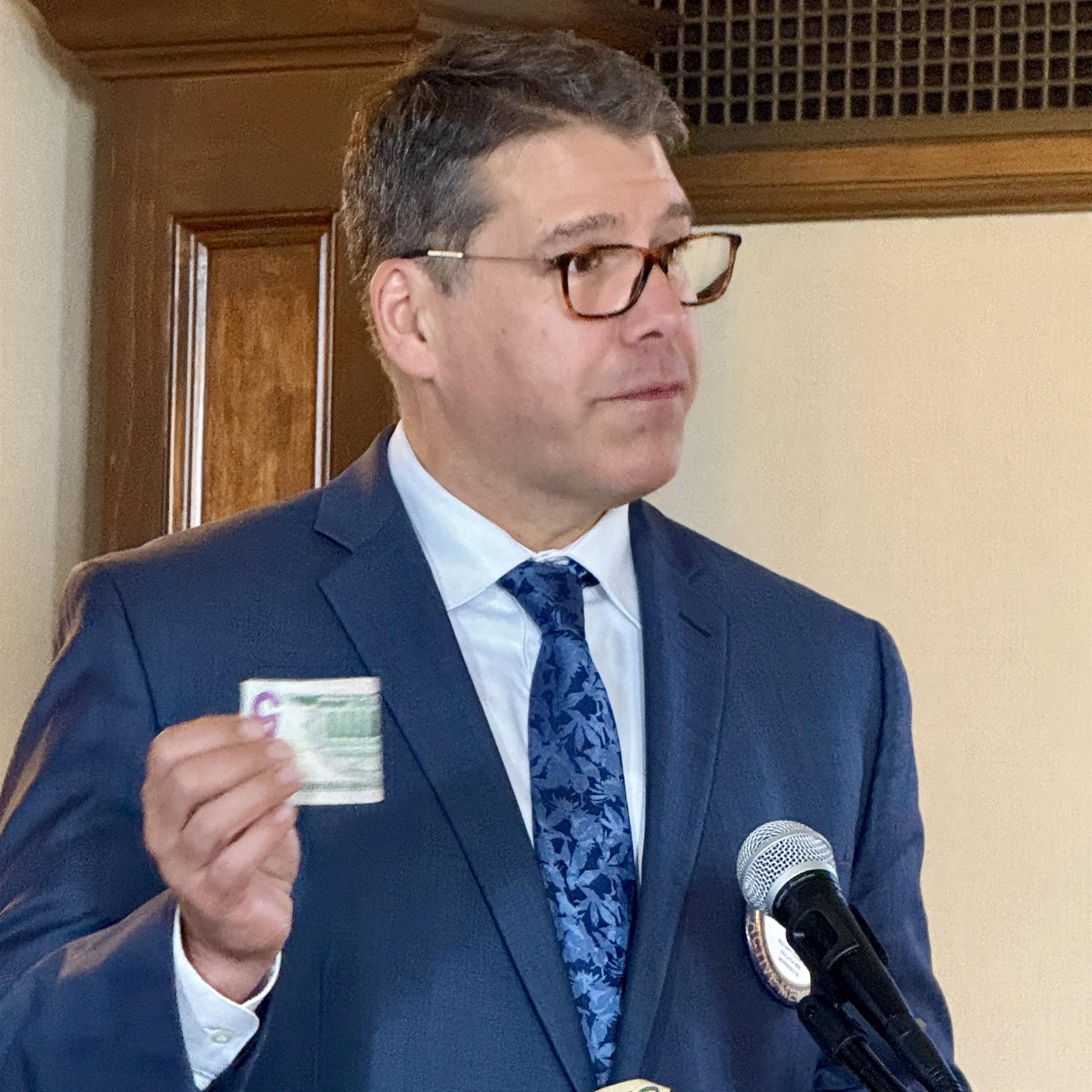 Superintendent John Magas contributing $5 for the 5% increase in graduation rates