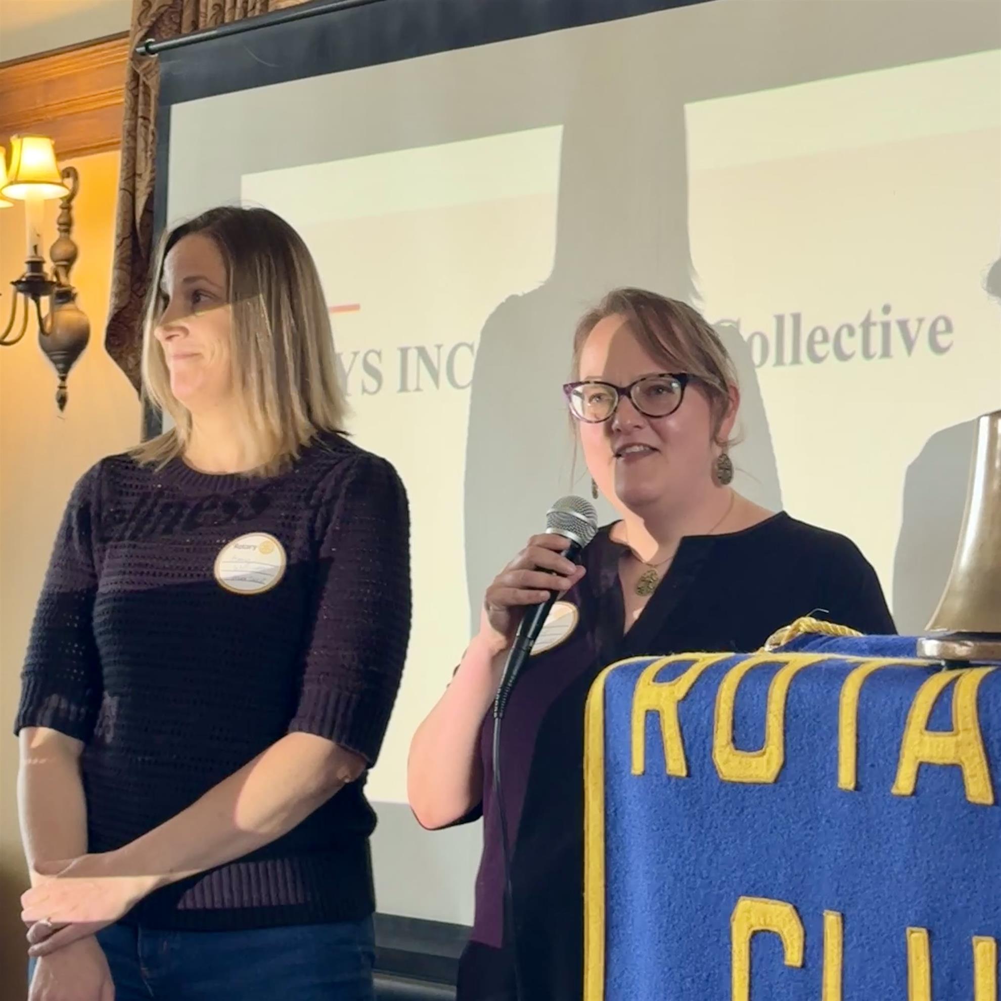 Jack Seiler, Chair of the Grants Committee, invited Colleen Kelly of Lutheran Social Services Crisis Nursery forward to receive a $2,000 grant check to help struggling families purchase everything from diapers to formula to baby clothes. Jack also welcomed Sarah Lorehl and Amy Wolcott of the St. Louis River Quest to receive a grant check for $862 to provide bus transportation for 1,400 6th-grade students to attend a half-day field trip on the St. Louis River.