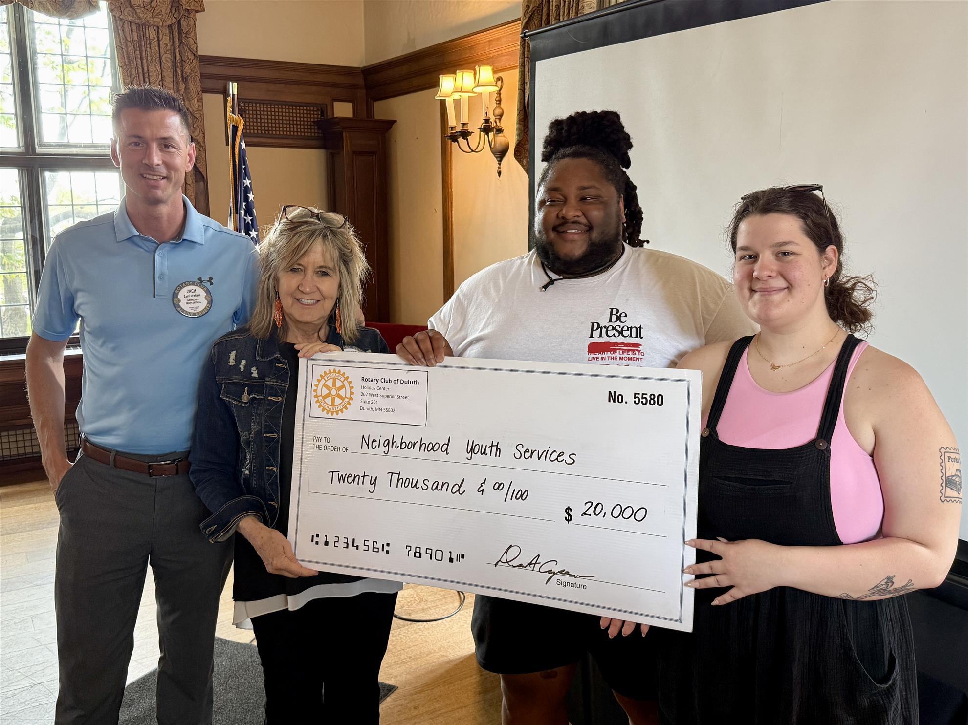 President Elizabeth Simonson presented Pez with a check and stated that Club 25 had raised $20,000 specifically for youth mental health services at NYS, as we believe in NYS’s mission.